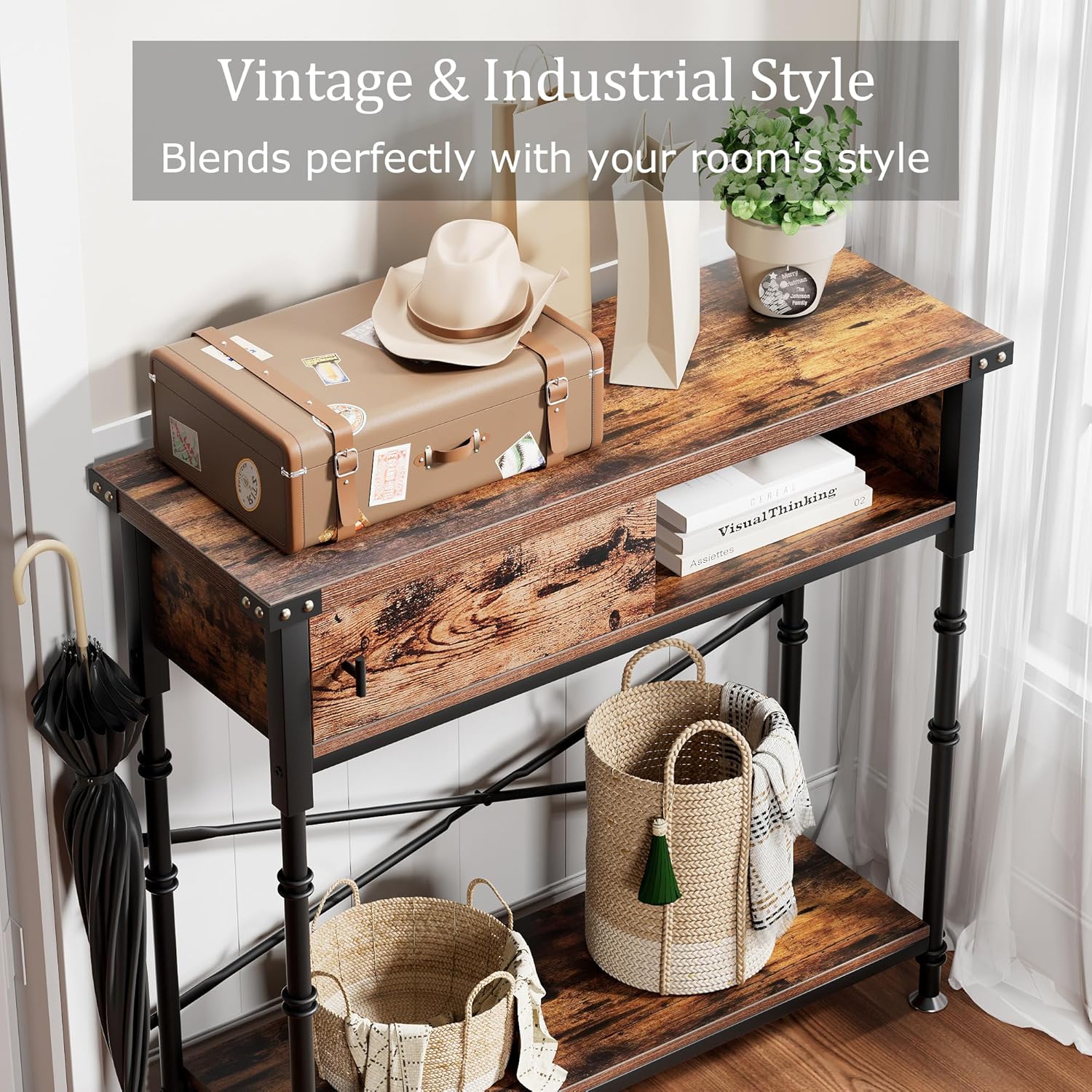 VECELO Console Table with Drawers, Narrow Wood Sofa Accent Furniture