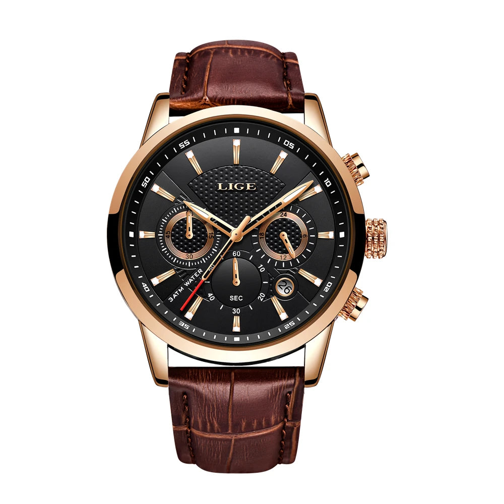 2025 LIGE Top Brand Luxury Casual Leather Quartz Men Watch Man Business Clock Male Sport Waterproof Date Chronograph Men Watches