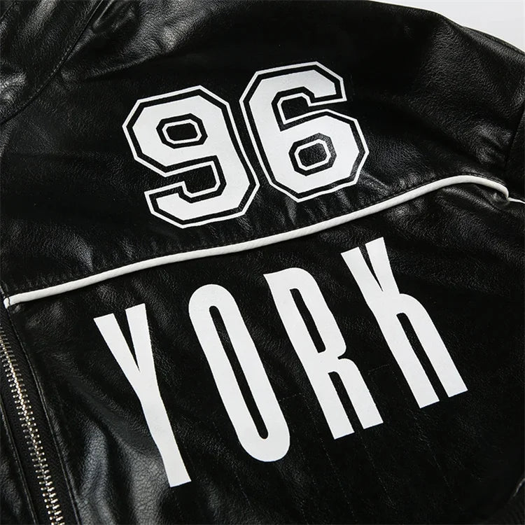 kliou Letter PU Patchwork Women Coats New Hipster Button Zip-up Full Sleeve Crop Jackets Trend Cool Street Outwear Spring New
