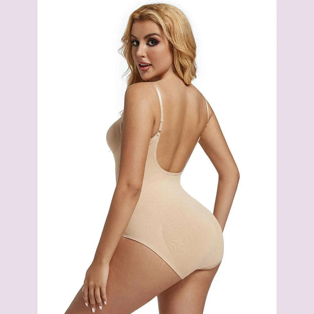 Low Back Bodysuits Shapewear for Women Open Crotch Body Shaper Seamless Tummy Control Push Up Corset Tank Top Backless Underwear