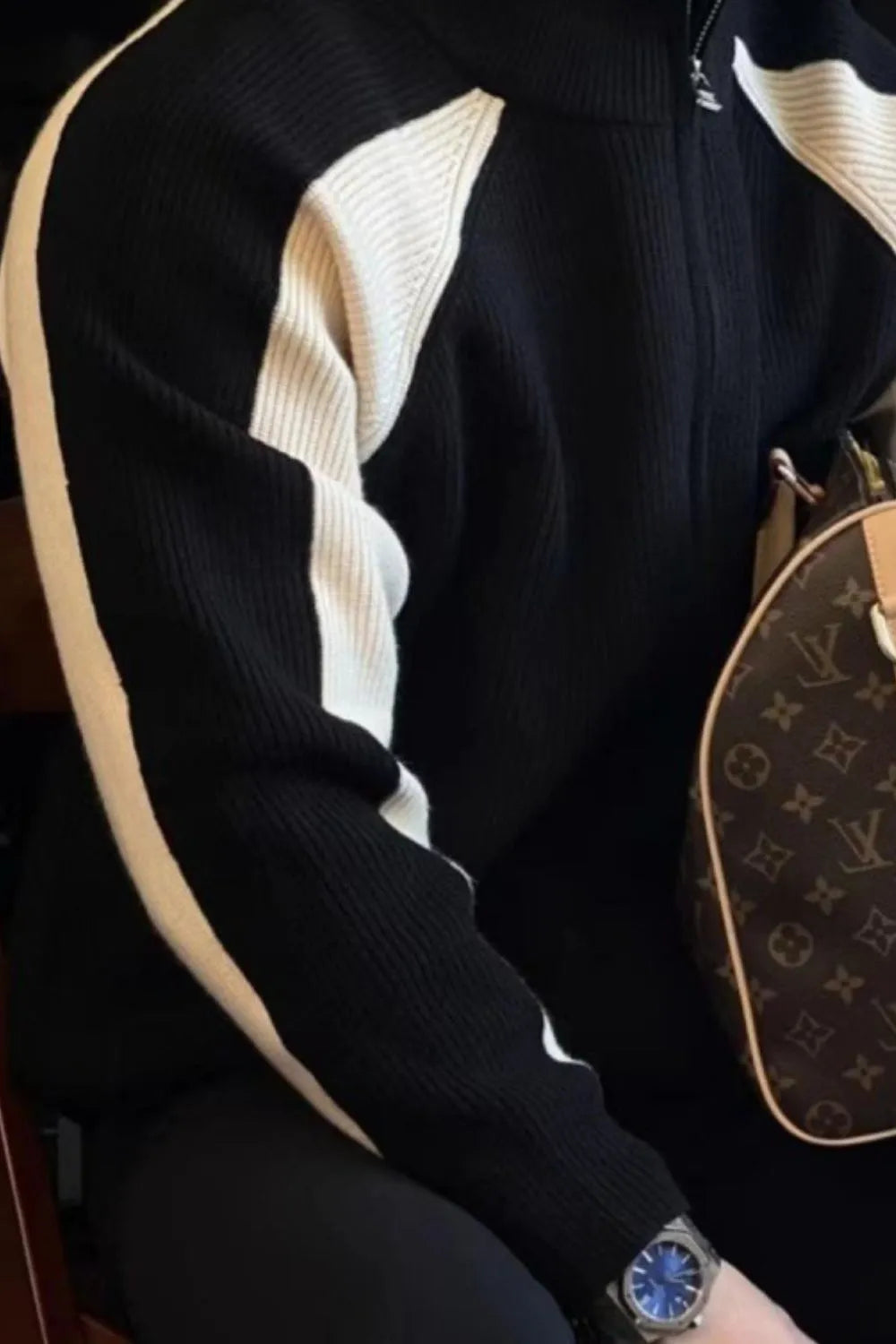 Men's Plus Size Color Block Ribbed Knit Zip-Up Cardigan