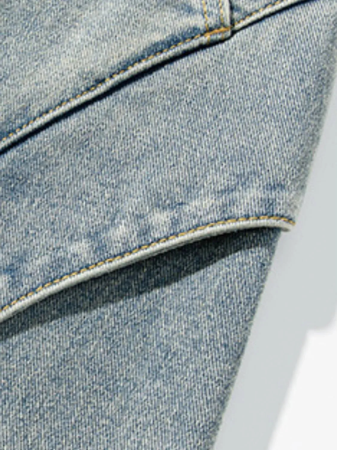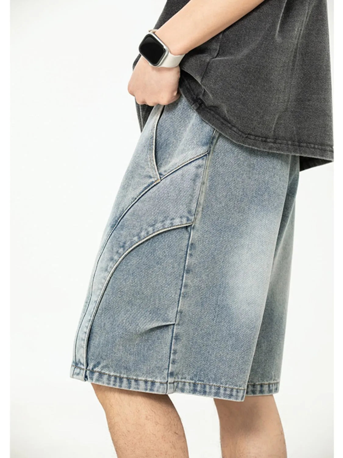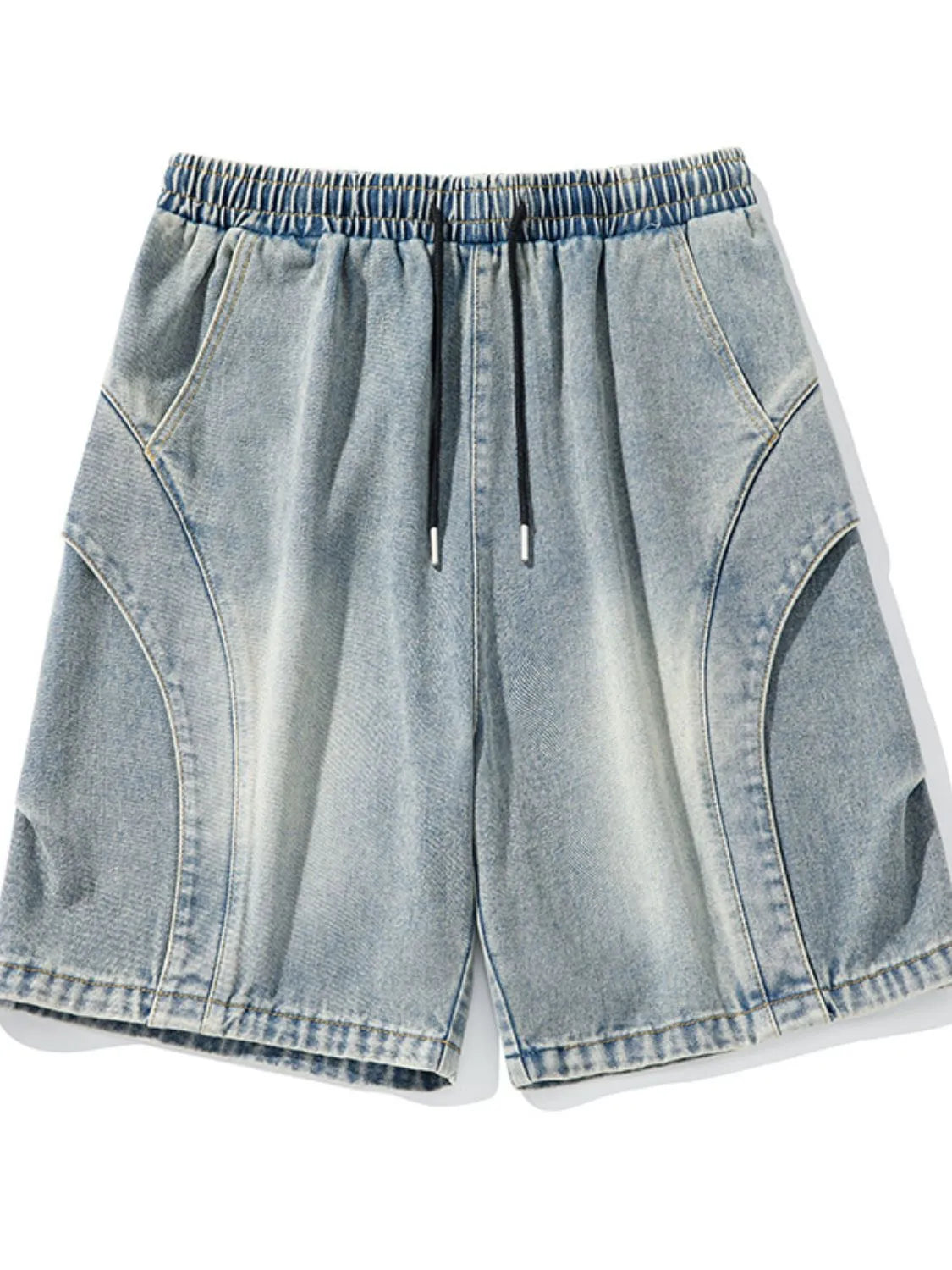 Men's Plus Size Drawstring Denim Shorts with Stitching Detail
