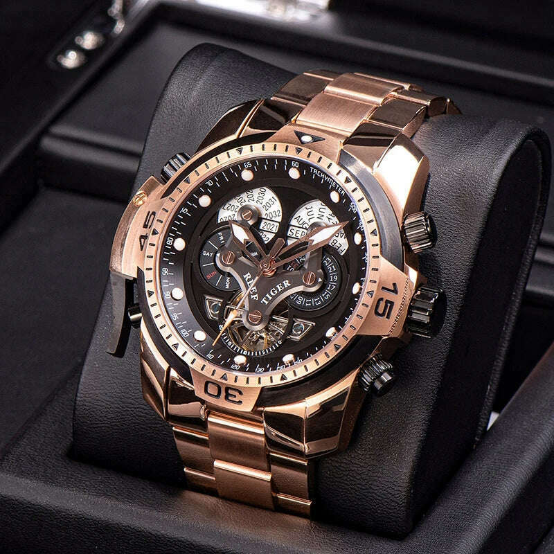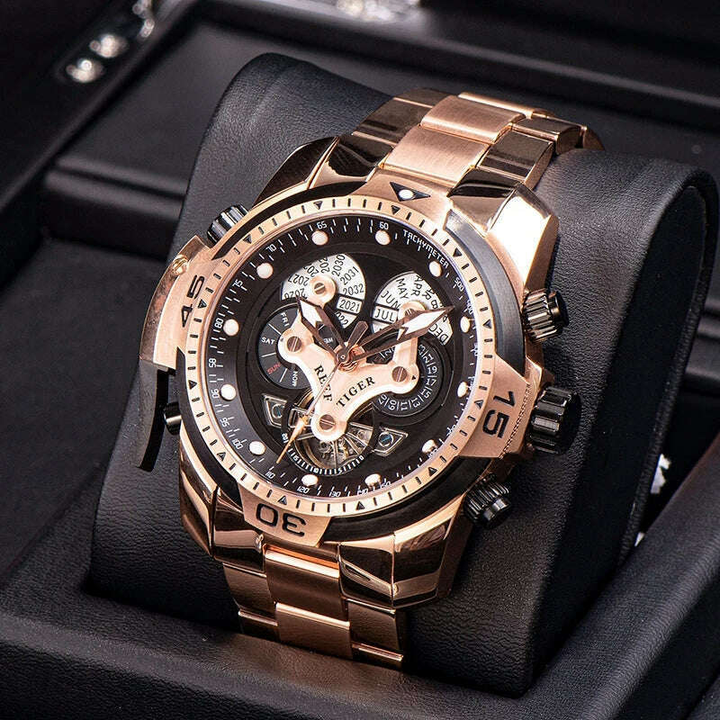 Reef Tiger/RT Designer Sport Mens Watch with Perpetual Calendar Date Day Complicated Blue Dial Mechanical Bracelet Watch RGA3503