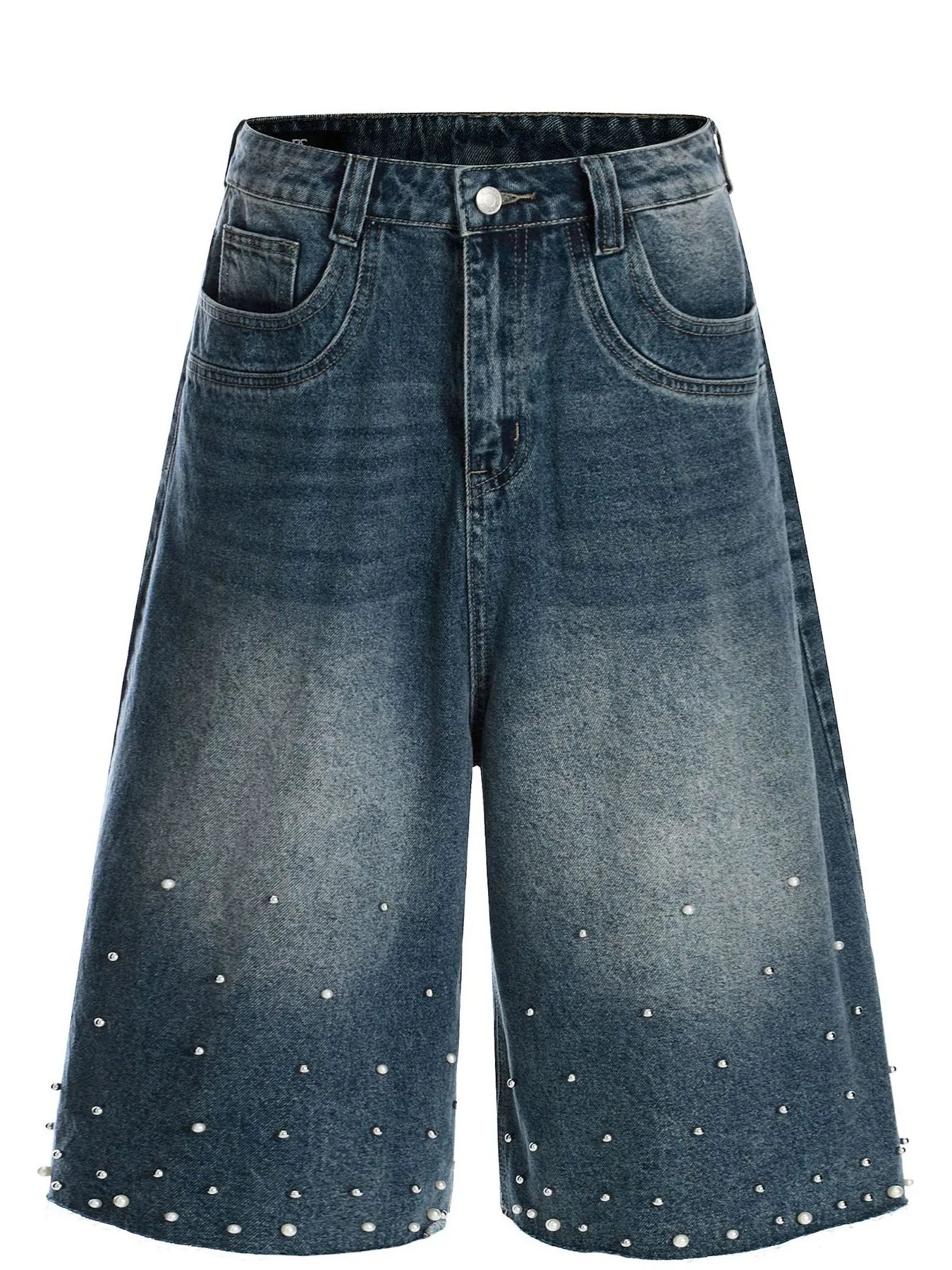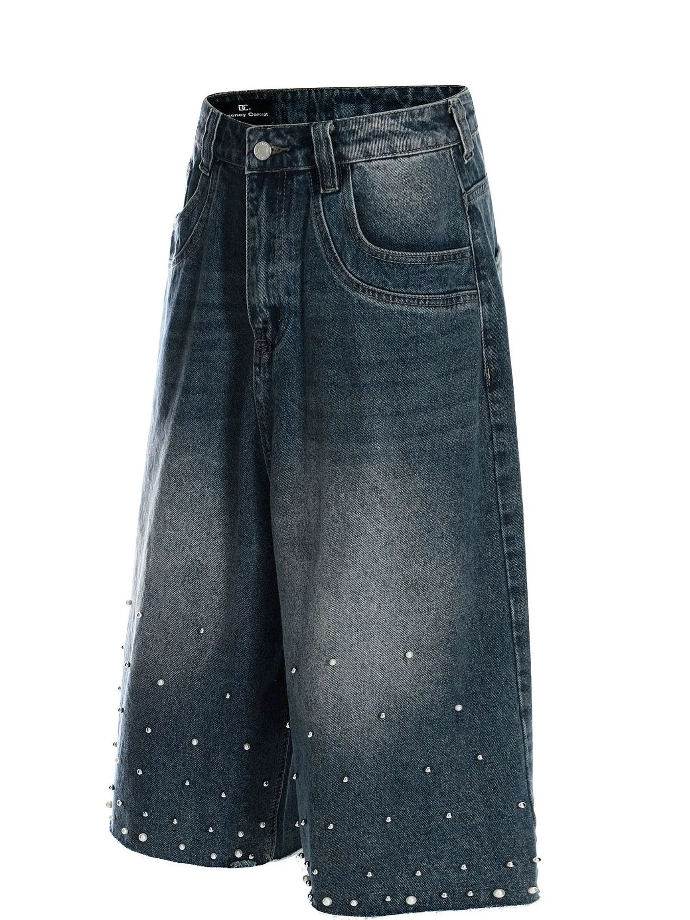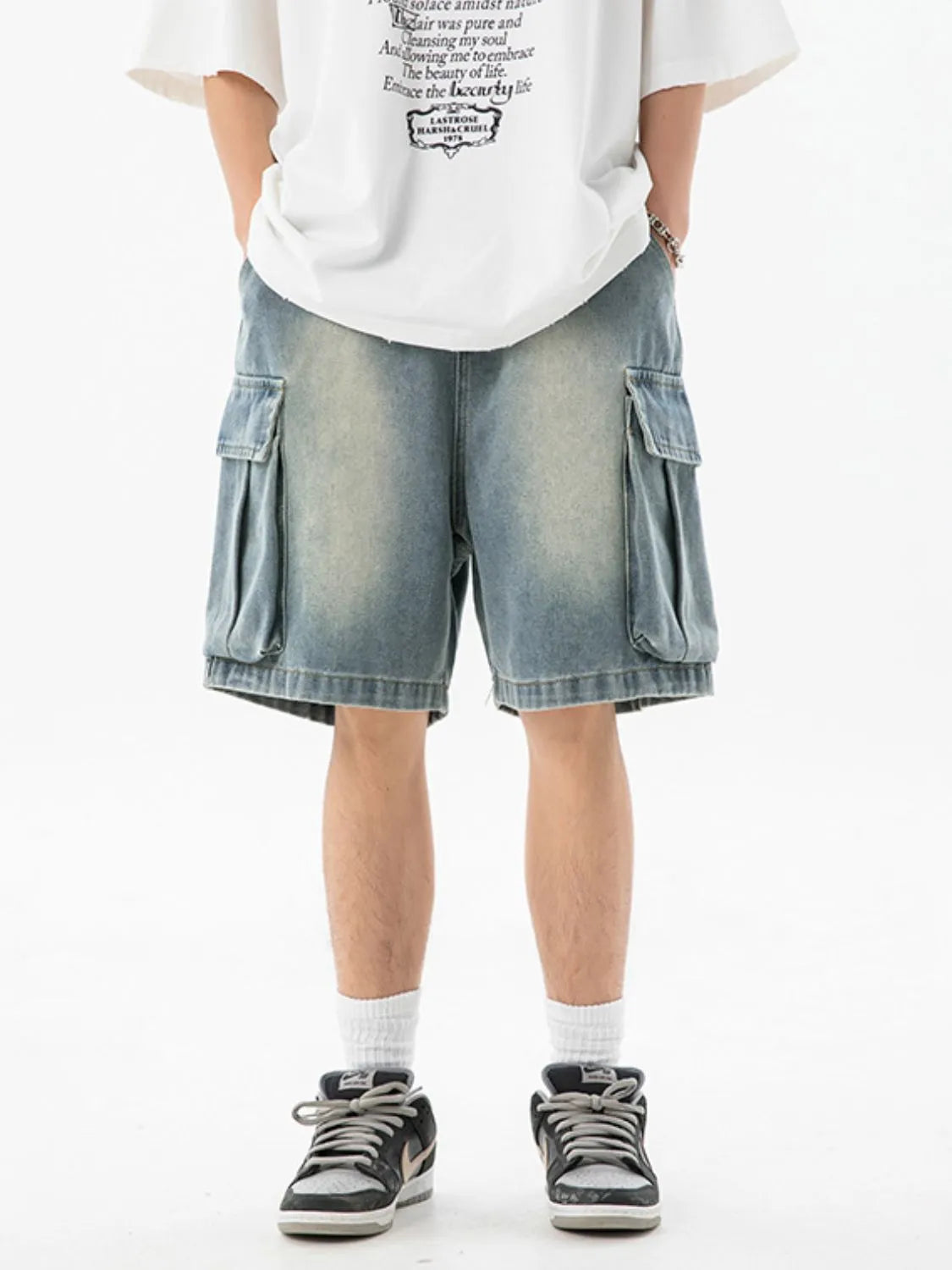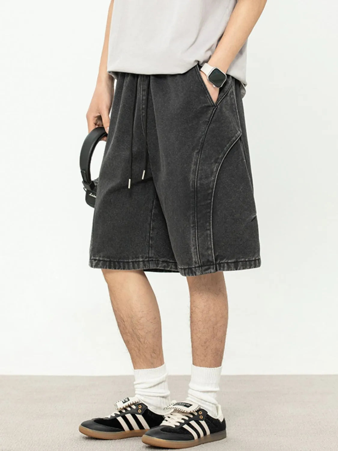Men's Wide Leg Relaxed Fit Denim Shorts
