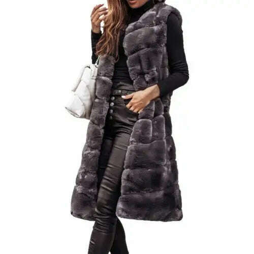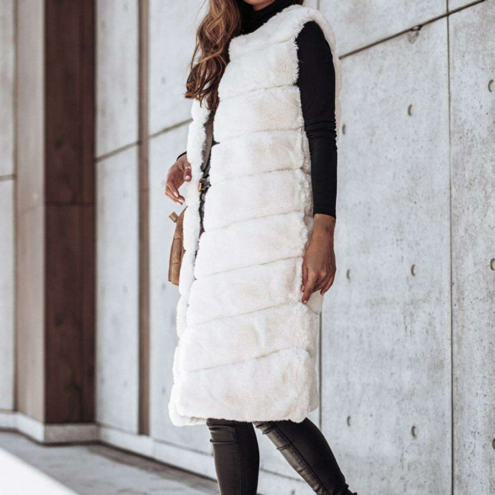 Autumn Winter Women Jacket Vest Solid Color Round Neck Faux Fur Coat Thick Crew Neck Outerwear Plush Jacket for Women