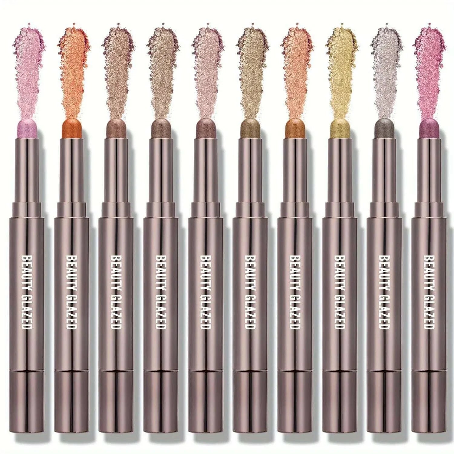 BEAUTY GLAZED 10 Colors Eyeshadow Stick Long-lasting Waterproof Eyeshadow Pen with Double Head Brush Matte and Shimmer Shade