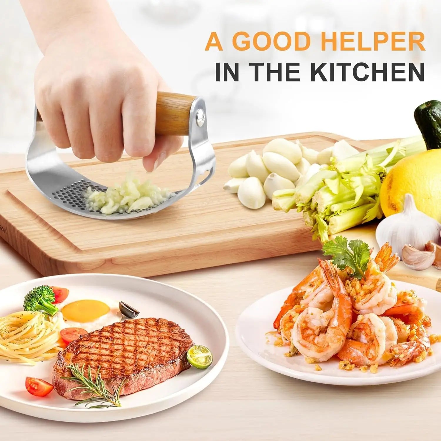 Garlic Press Stainless Steel Rocker Garlic Peeler Wooden Handle Garlic Presses Garlic Rocker Thickened Garlic Press Crusher