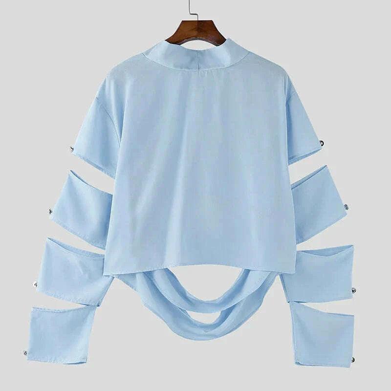 INCERUN Men Irregular T Shirts Solid Color Turtleneck Long Sleeve Hollow Out Men Clothing Streetwear 2025 Fashion Sexy Camisetas