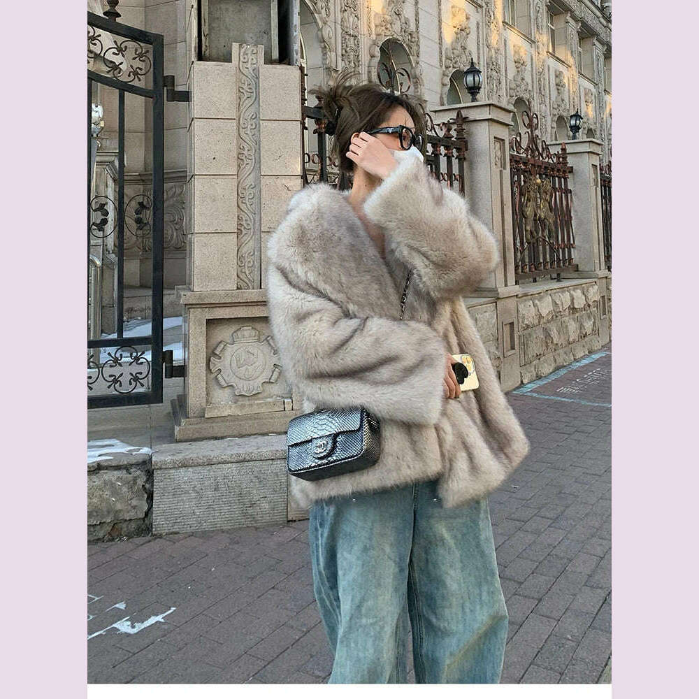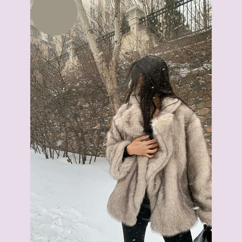 Lautaro Autumn Winter Oversized Loose Casual Luxury Soft Thick Warm Hairy Faux Fox Fur Coat Women Long Sleeve Fluffy Jacket 2024