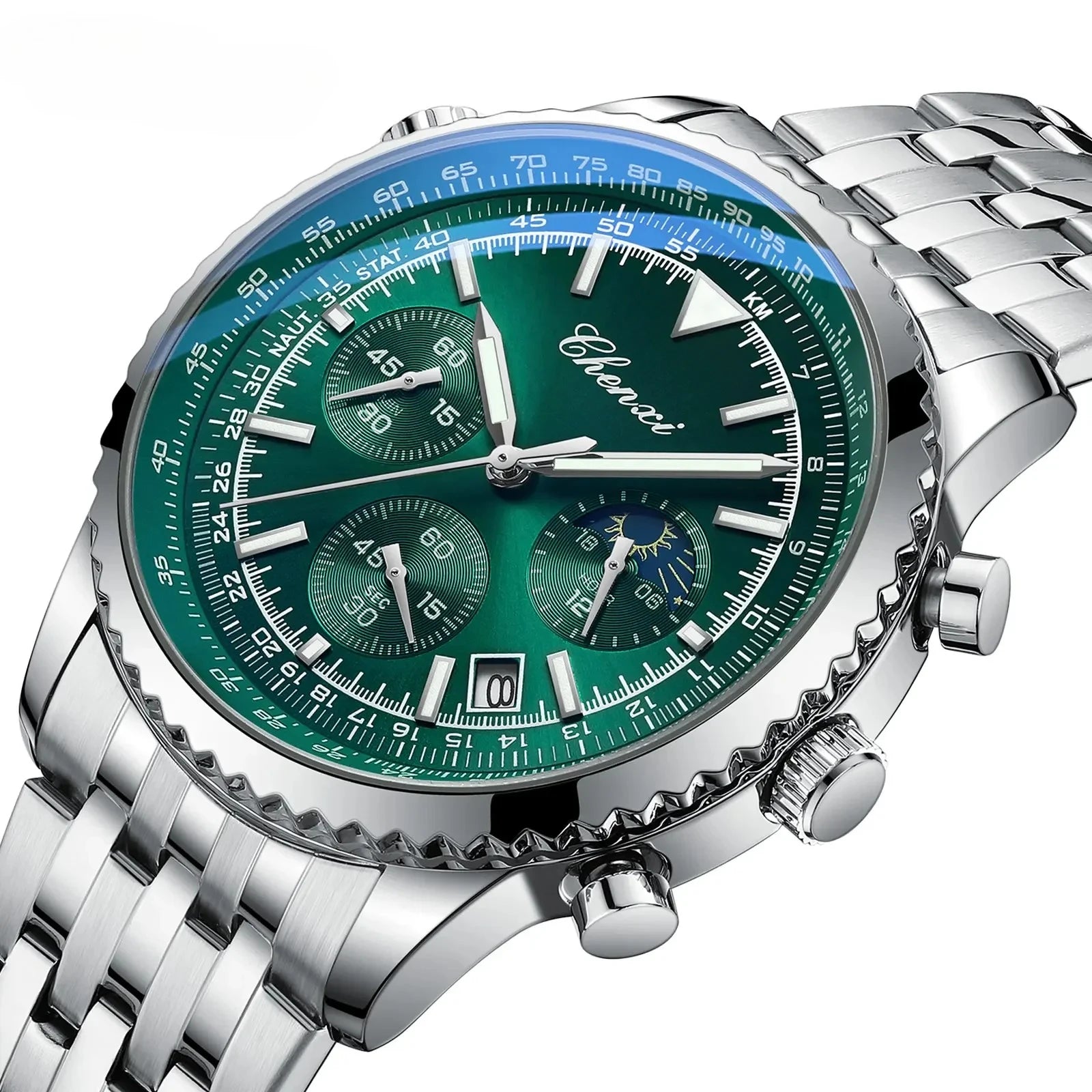 Luxury StopWatch Moon Phase Waterproof Male Clock Luminous Date Stainless Steel Square Quartz Men Watch reloj hombre