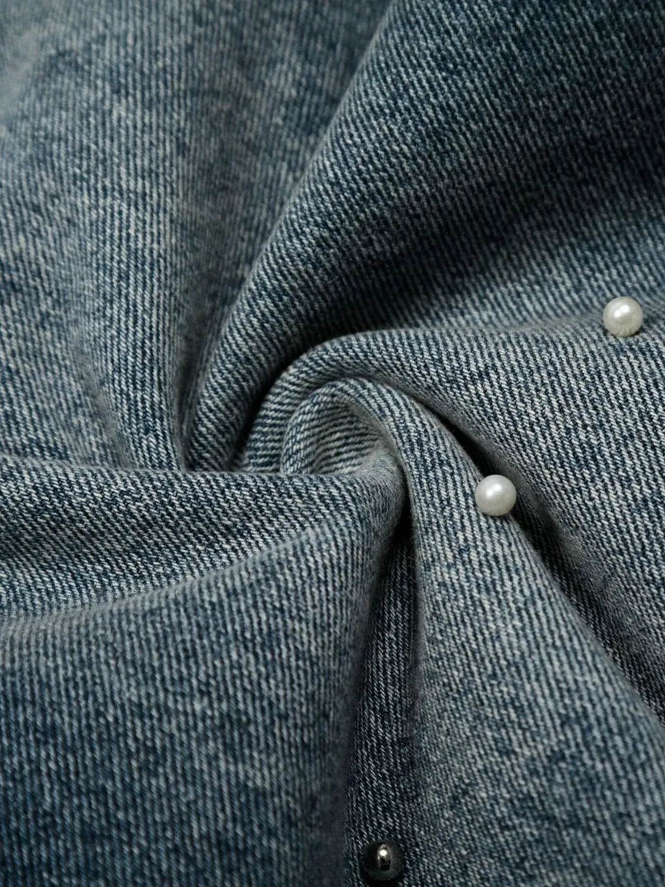 Men's Pearl Embellished Wide Leg Denim Shorts