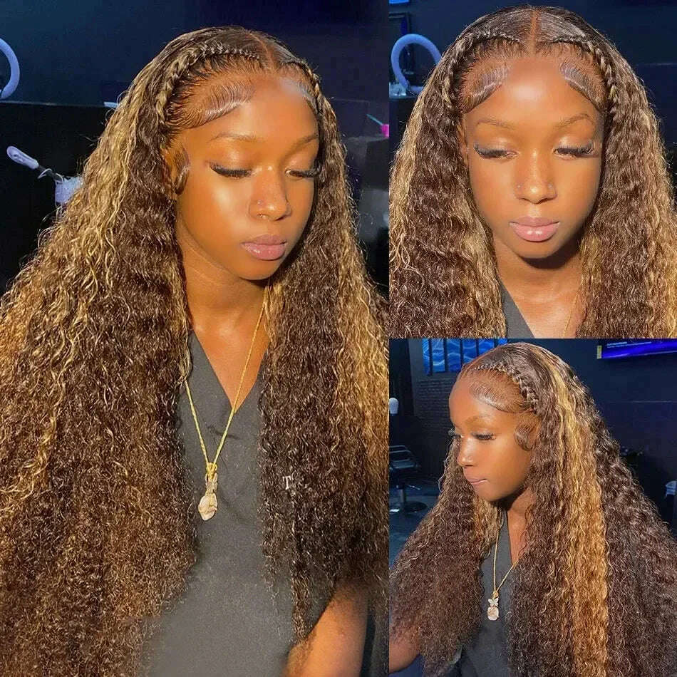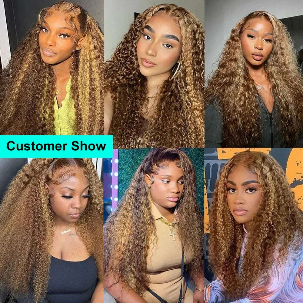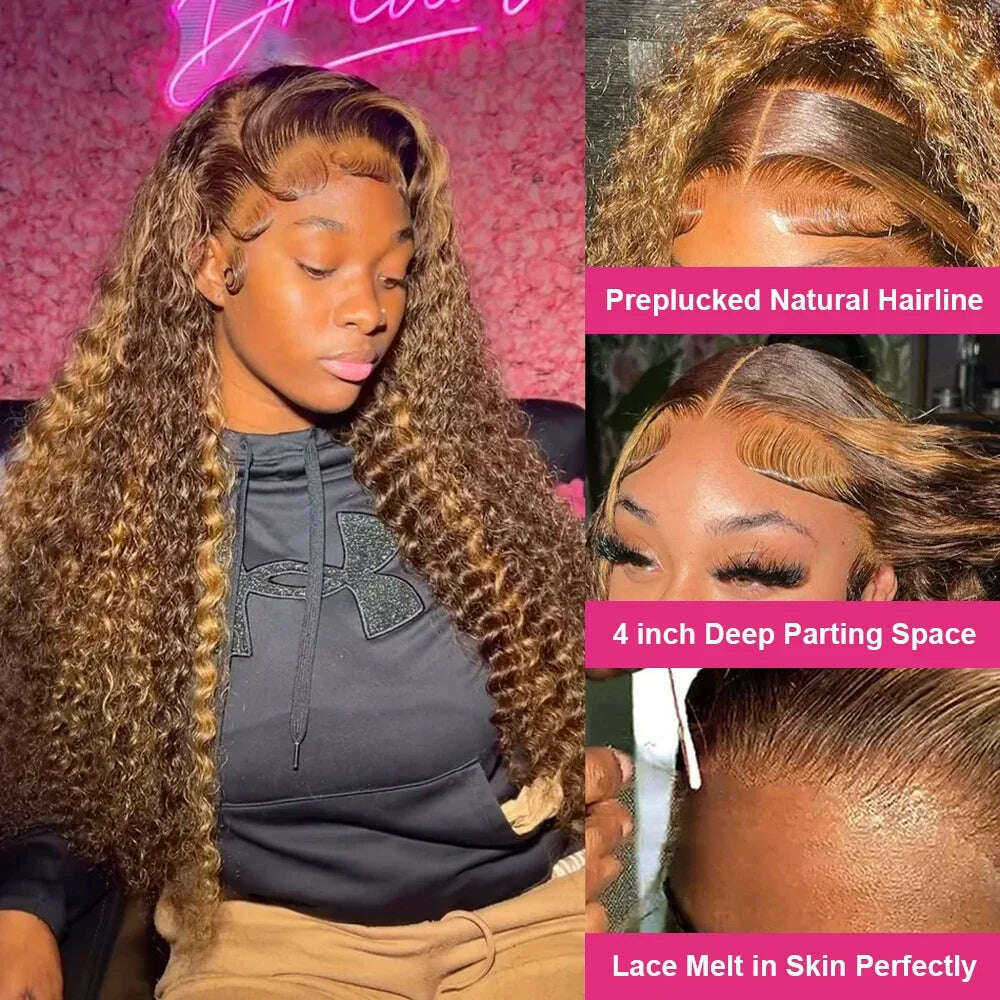 Ombre Highlight Wig 100% Human Hair Curly Loose Deep Wave Lace Frontal Wig 4/27 Colored Brazilian 13x4 Lace Front Wigs For Women
