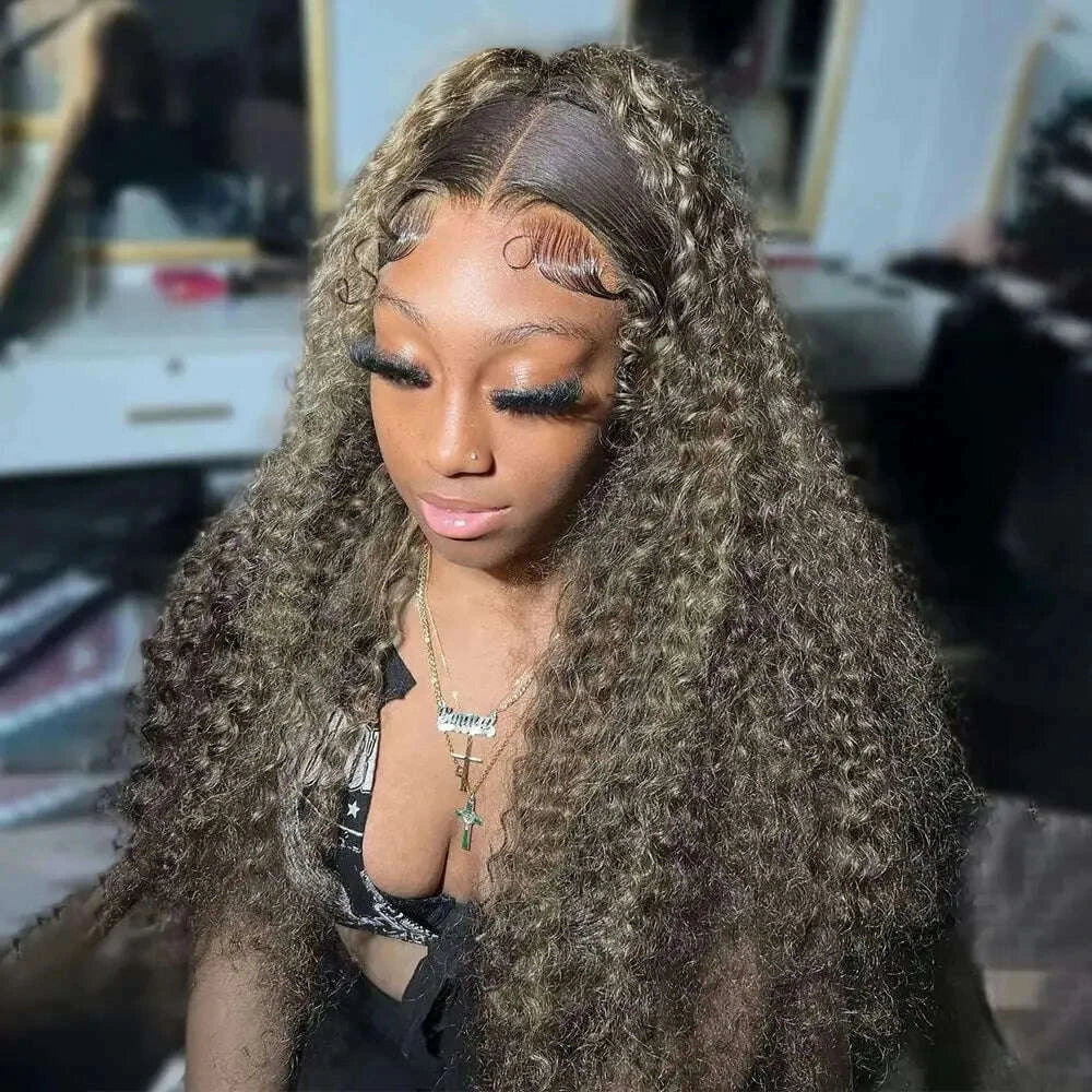 Soft 26Inch Long Glueless Ombre Blond Kinky Curly 180Density Lace Front Wig For Black Women With Baby Hair Preplucked Daily