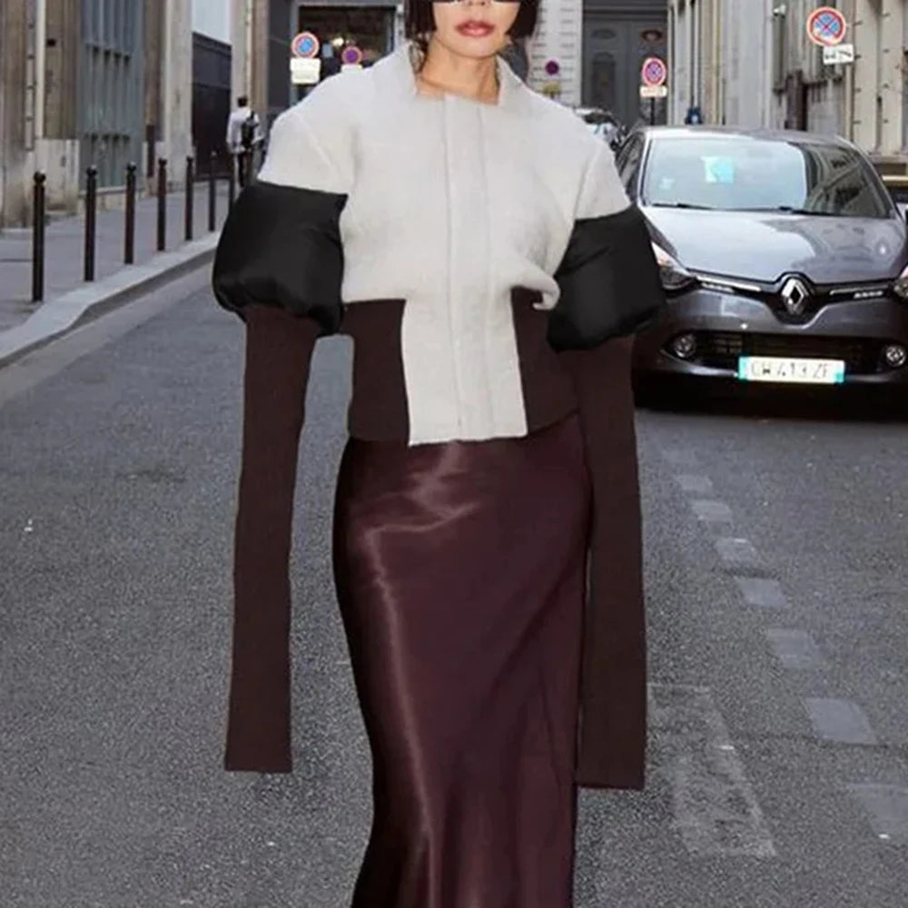 TWOTWINSTYLE Hit Color Slimming High Street Coat for Women Round Neck Long Sleeves Patchwork Zipper Fashion Jackets Female New