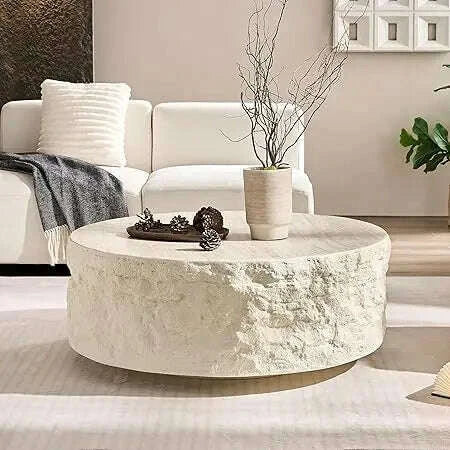 35.43'' Round Coffee Table, Fiberglass Vintage Center Table, Imitation Stone Table Front of The Sofa, Modern Coffee Table for Li
