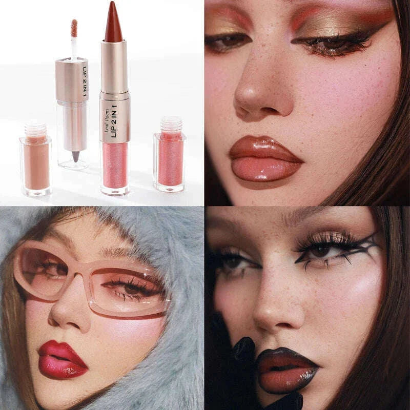 Black Brown Tapered Lip Liner Contour Pencil Double Head Mirror Plumping Lip Glaze Crystal Lip Gloss Sexy Red Lips Tint Makeup