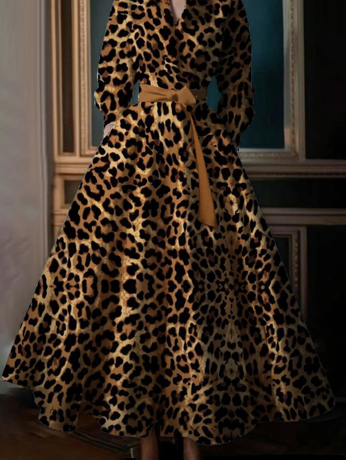 Casual Commuter Retro Boho Leopard Pattern Women's Big Size Dress New High Street Standing Collar Loose Big Swing Shirt Dresses
