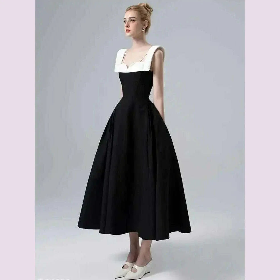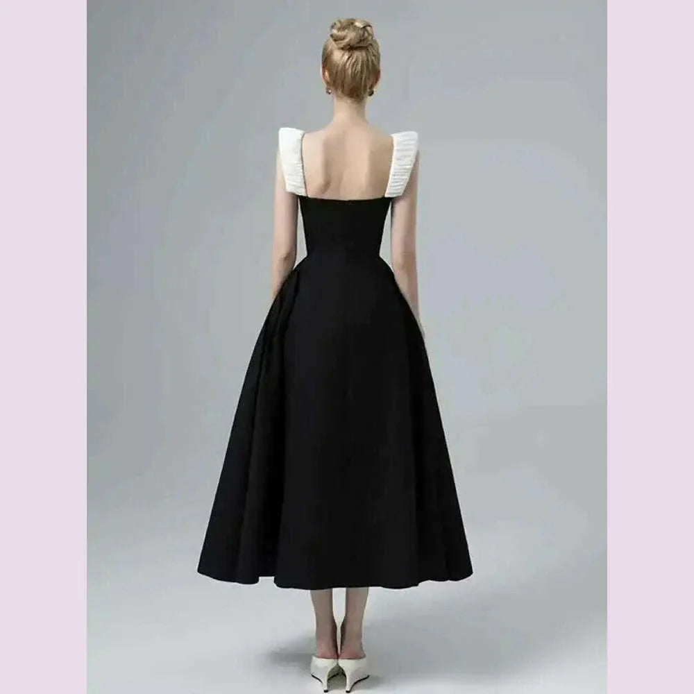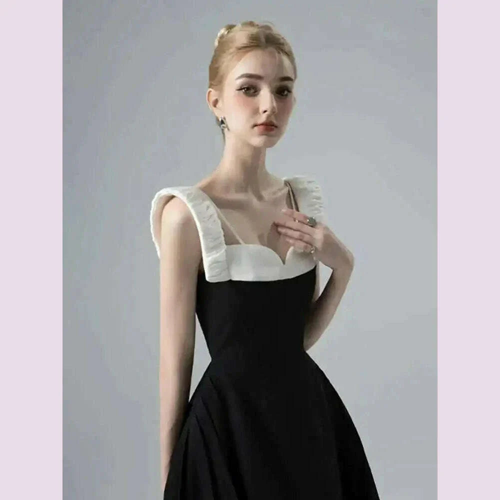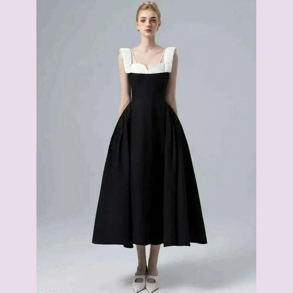 DEAT Elegant Dress Contrast Color Wide Slip Sleeveless A-line Backless Women's Evening Dress 2025 Spring New Fashion 13DB4369