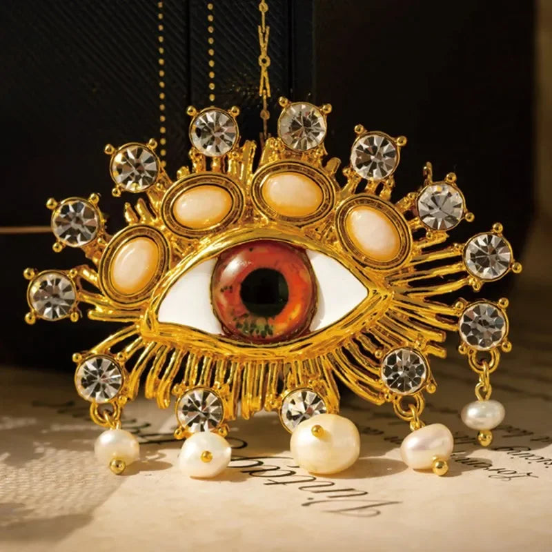 Deluxe Exaggerated Eye Brooch Baroque Pearl Tassel for Men Women Unisex Pin Jewelry Vintage Badge