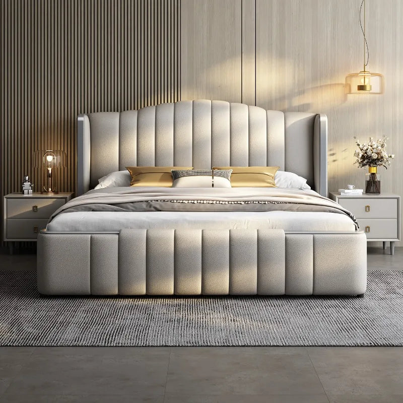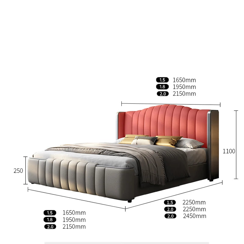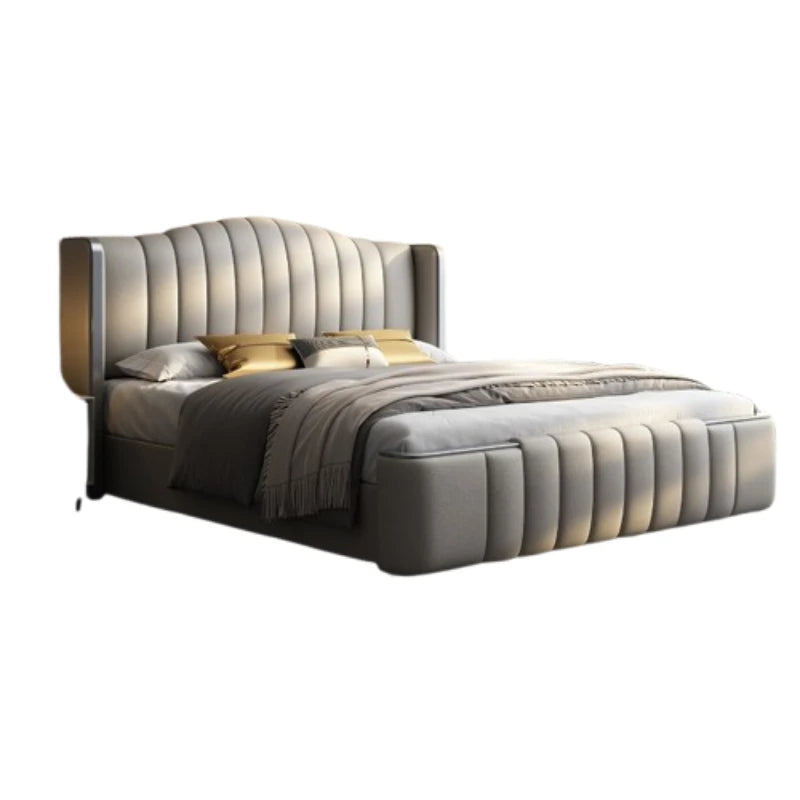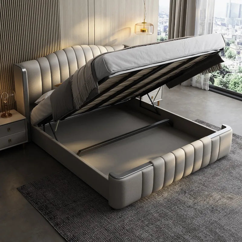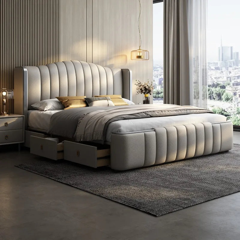 Design Simple Italian Type Bed Cowhide Luxurious Standing Sleeping Bed Double Wedding Camas De Matrimonio Dormitorio Furnitures