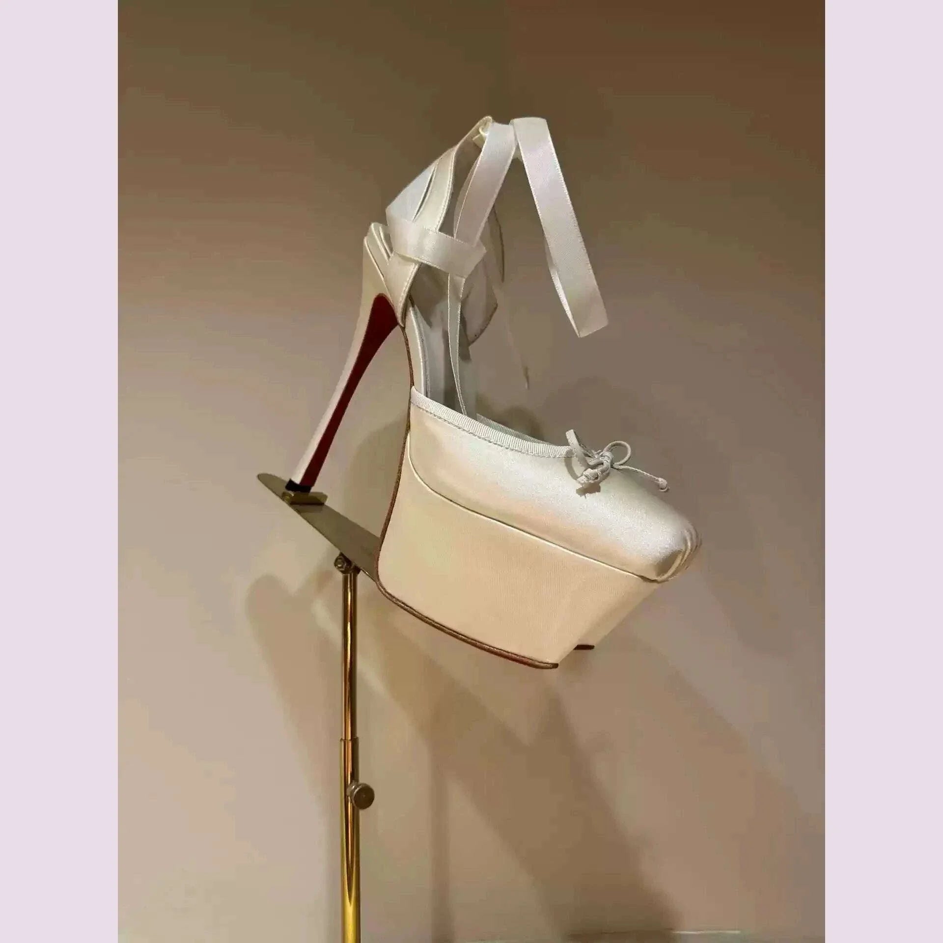 European and American High-heeled Dance Platform Silk Satin Square Bow Sandals Shoes Women Zapatos Mujer