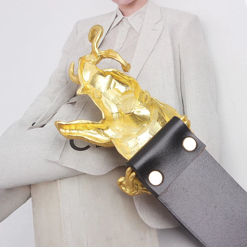 Fashion Real Leather Belts for Women Luxury Designer Female Waist Elastic Corset Belt Gold Heavy Elephant Metal Buckle
