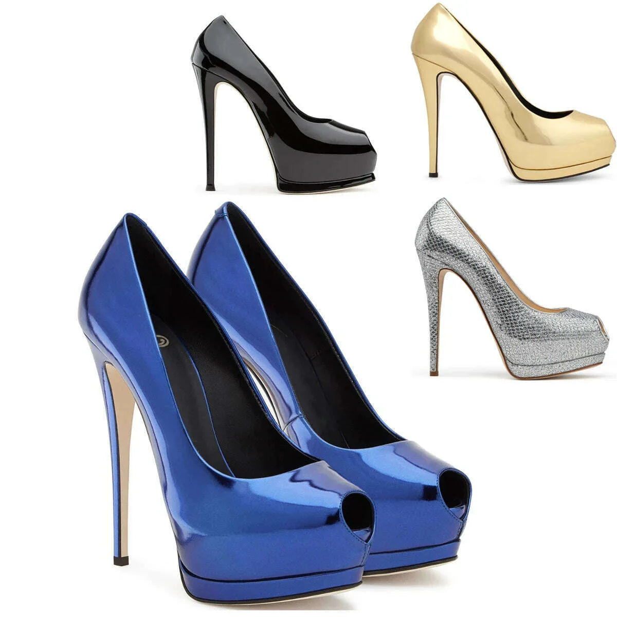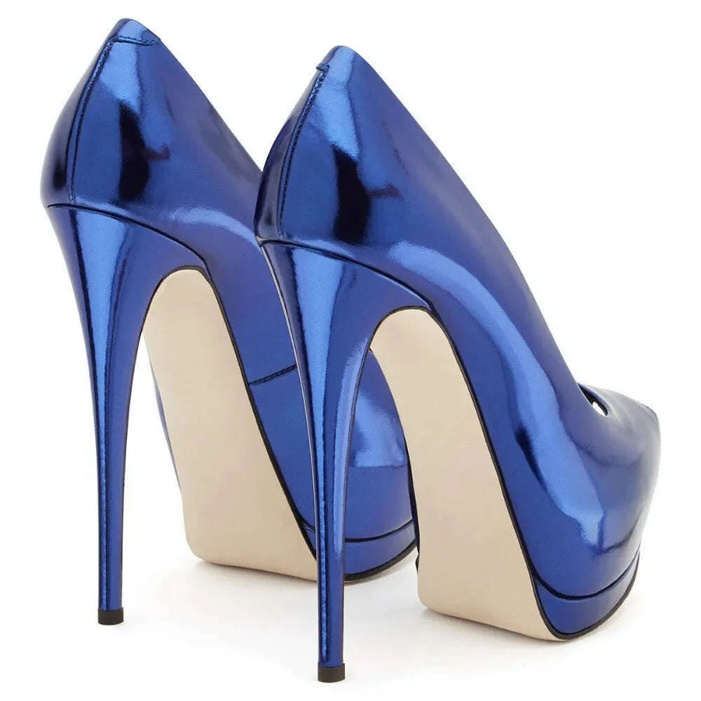 Fashion Women's Peep Toe High Heels Platform Pumps Stilettos Ladies Wedding Party Dress Shoes Blue Black Support Customized