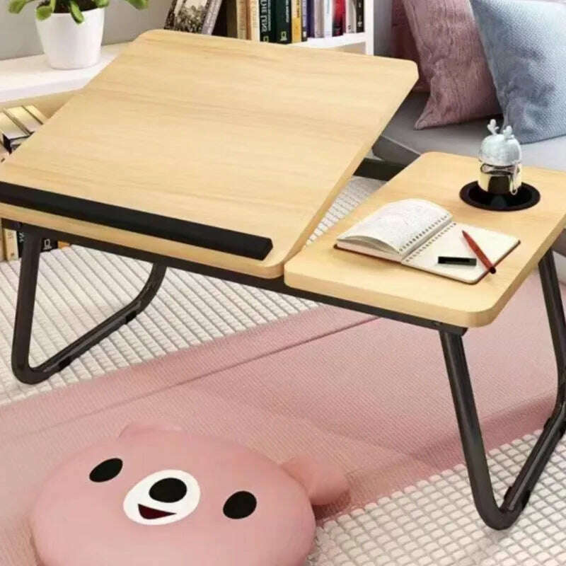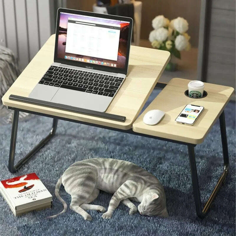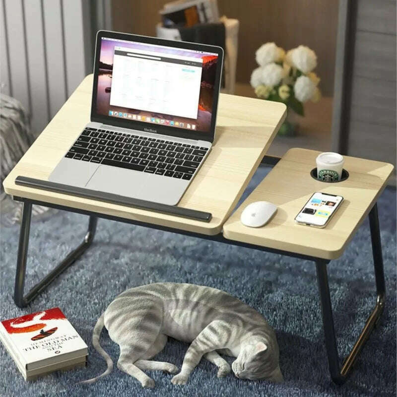 Folding Laptop Desk On The Bed 5 gear Lifting Adjustable Laptop Table with Cup Holder Simple Computer Desk For Working Reading