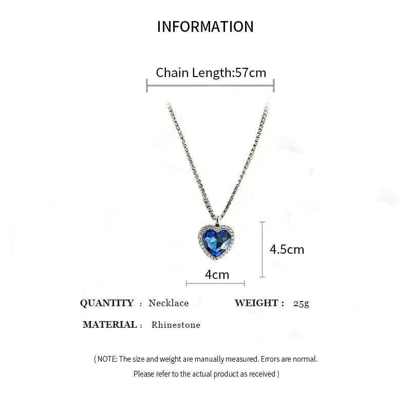Heart of Ocean Blue Heart Necklaces for Women Rhinestone Crystal Long Chain Necklaces Love Forever Jewelry For Party Gifts