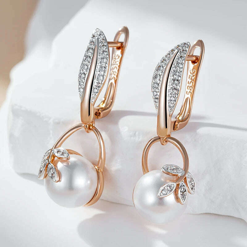 Kinel Hot Fashion Crystal Flower Pearl Drop Earrings for Women 585 Rose Gold Silver Color Mix Boho Ethnic Wedding Jewelry Gift