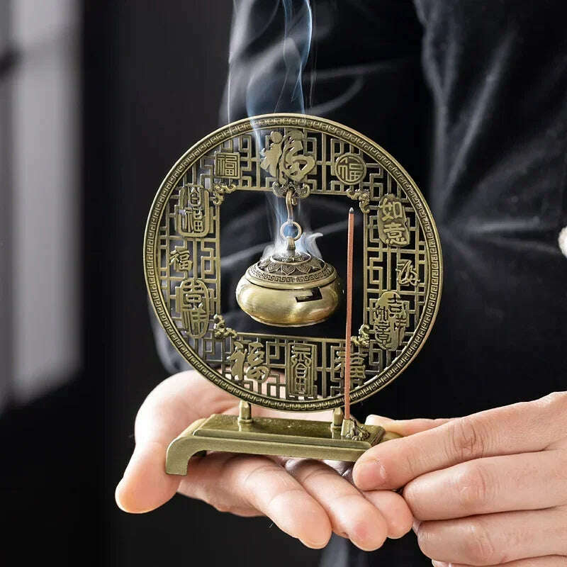 Lotus Flower Incense Burner Creative Retro Hollow Out Copper Coin Hanging Lotus Burners Blessing Nasturtium Holder Home Decor