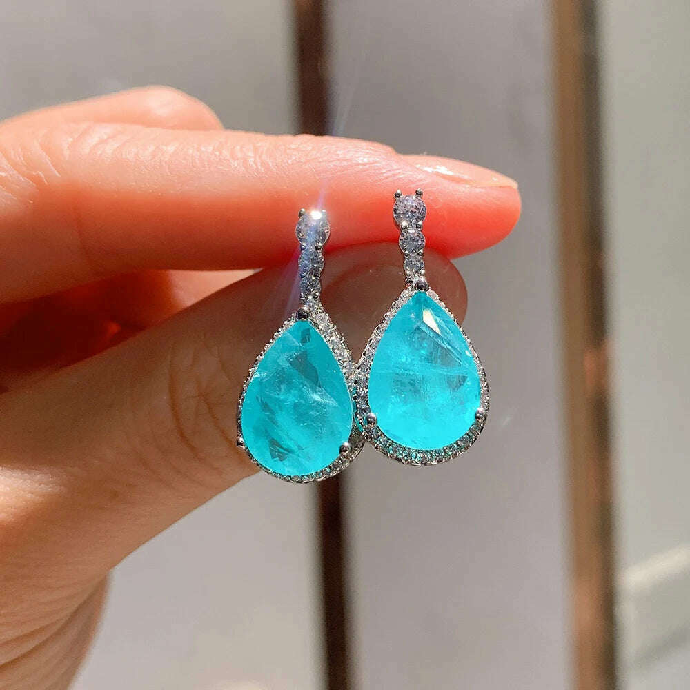 Luomansi Luxury 925 Sterling Silver Paraiba Tourmaline Gemstone Earrings/Pendant/Necklace/Ring Wedding Jewelry Sets Wholesale