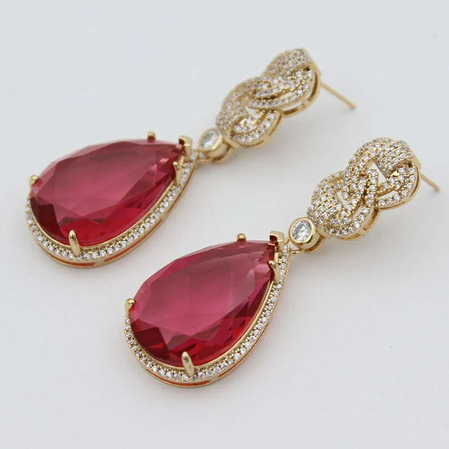 Luxury Dangle Earrings Red Yellow Transparent Teardrop Earrings for Women Evening Party Wedding Bridal Jewelry Gift Wife