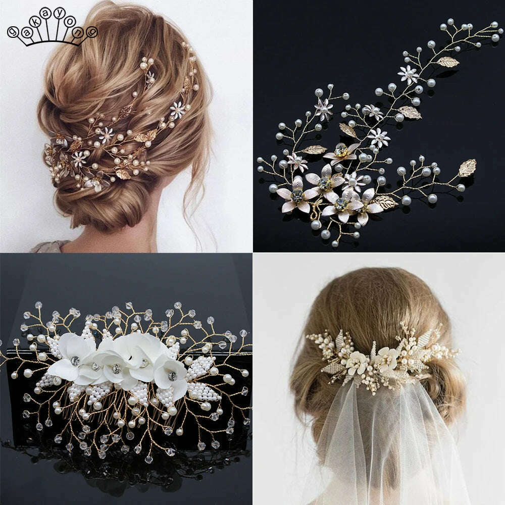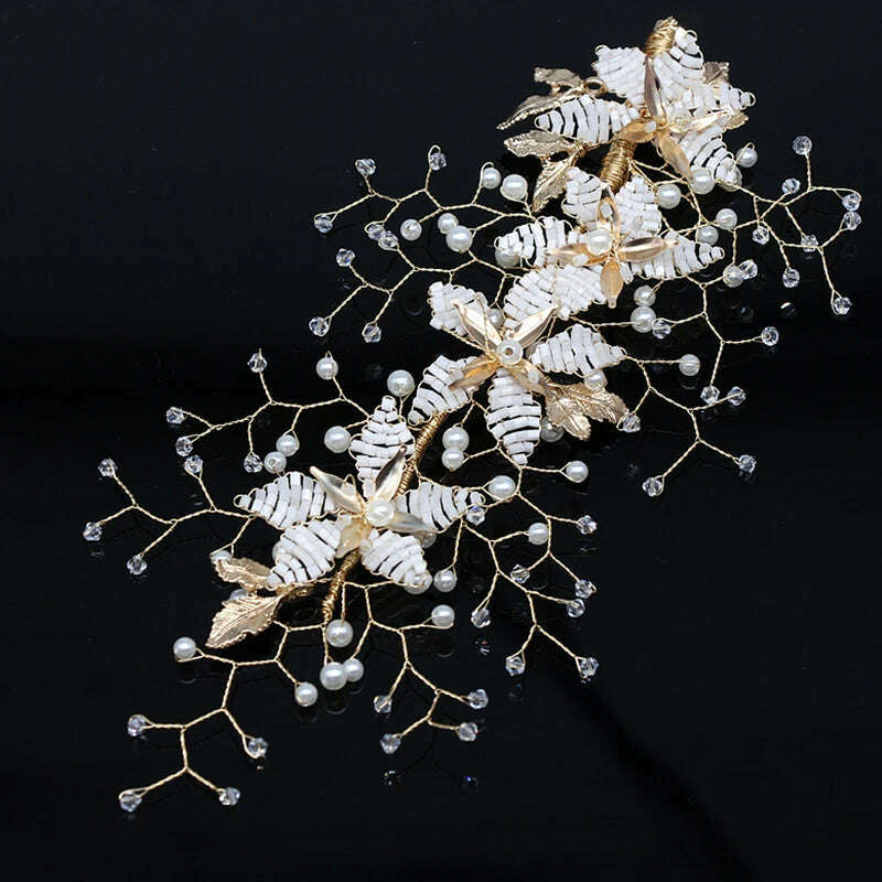 New Design Handmade Crystal Wedding Hair Accessories Tiara Headband Headpiece Simulated Pearl Bridal Hair Jewelry