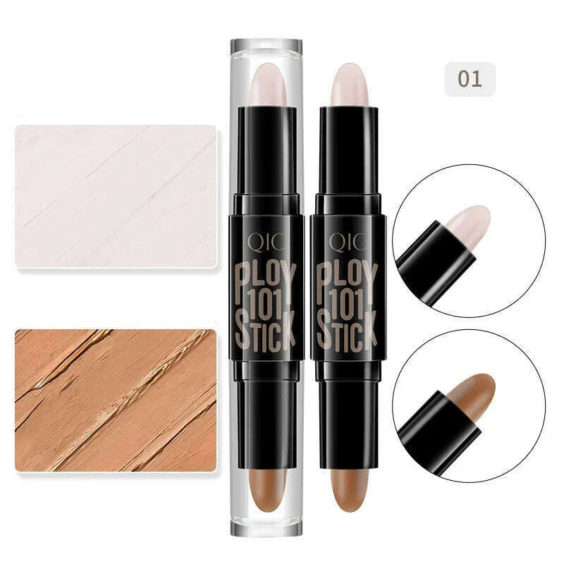 QIC Double-headed Concealer Stick Three-dimensional Repair Volume Brighten Face Highlight Concealer Pen Color Repair Makeup