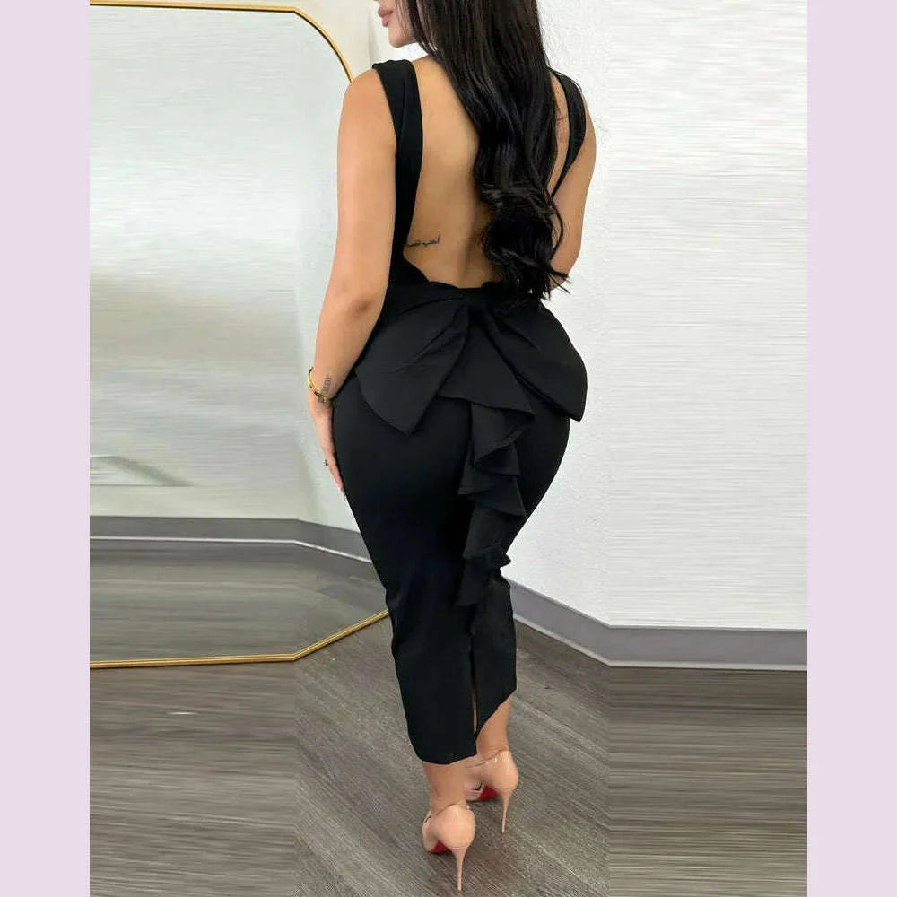 Summer 2024 Vestidos Sexy Party Dresses Women Plunging V-neck Sleeveless Backless Bowknot Ruffles Back Bodycon Midi Dress