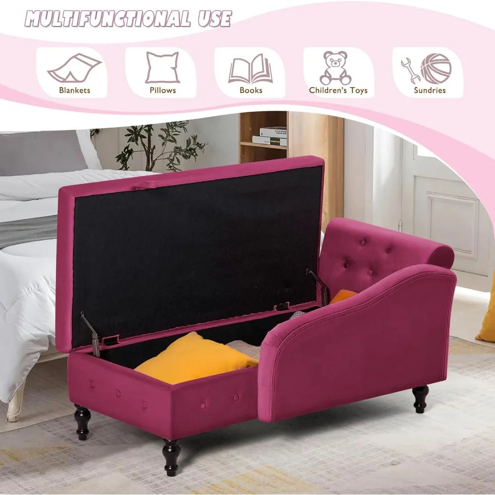 Velvet Chaise Lounge with Left Armrest & Storage Space,Button Tufted Lounge Chair w/Lumbar Pillow,Modern Upholstered Lounge Chai