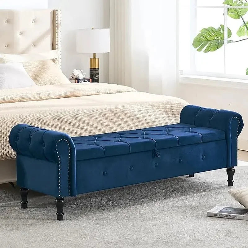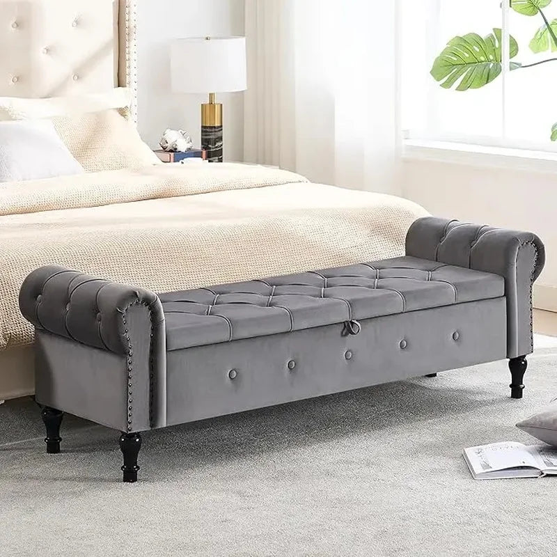 Velvet Tufted Storage Bench, 67" Bedroom End of Bed Bench, King Size with Rolled Arms, Button Ottoman Bench