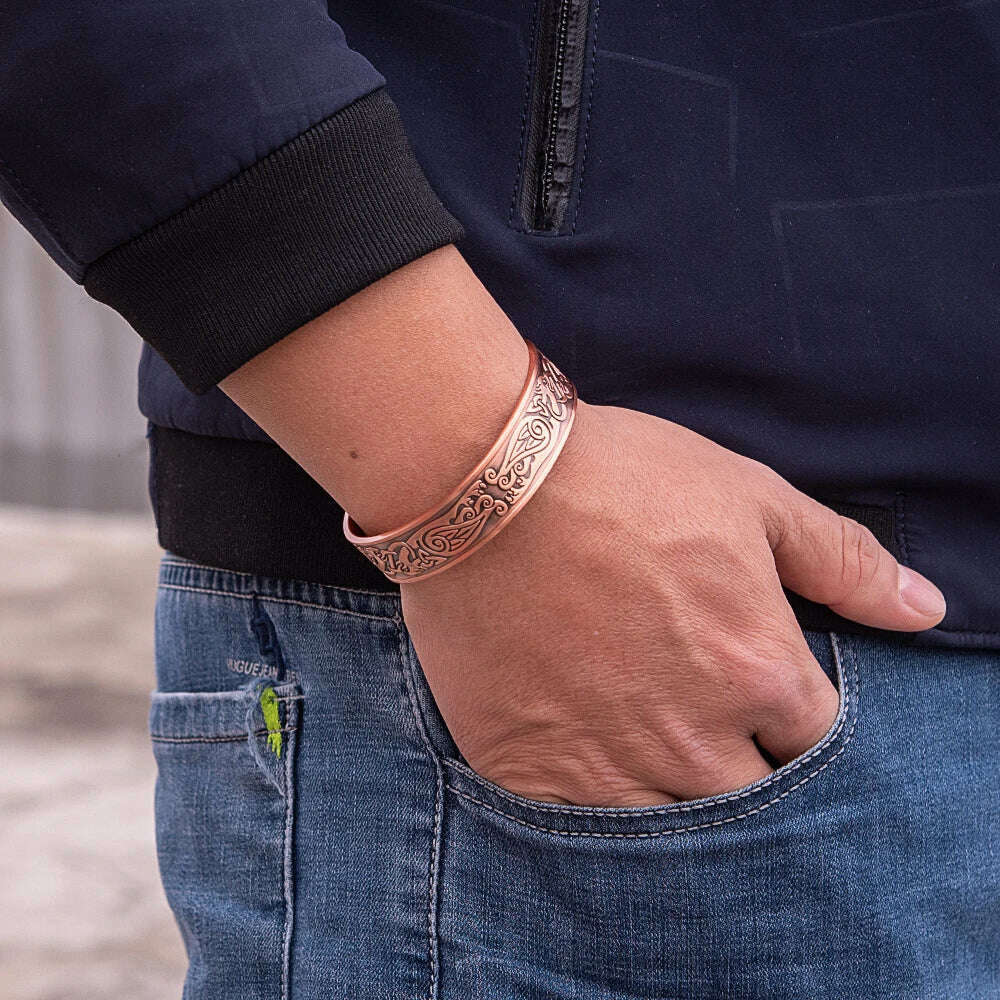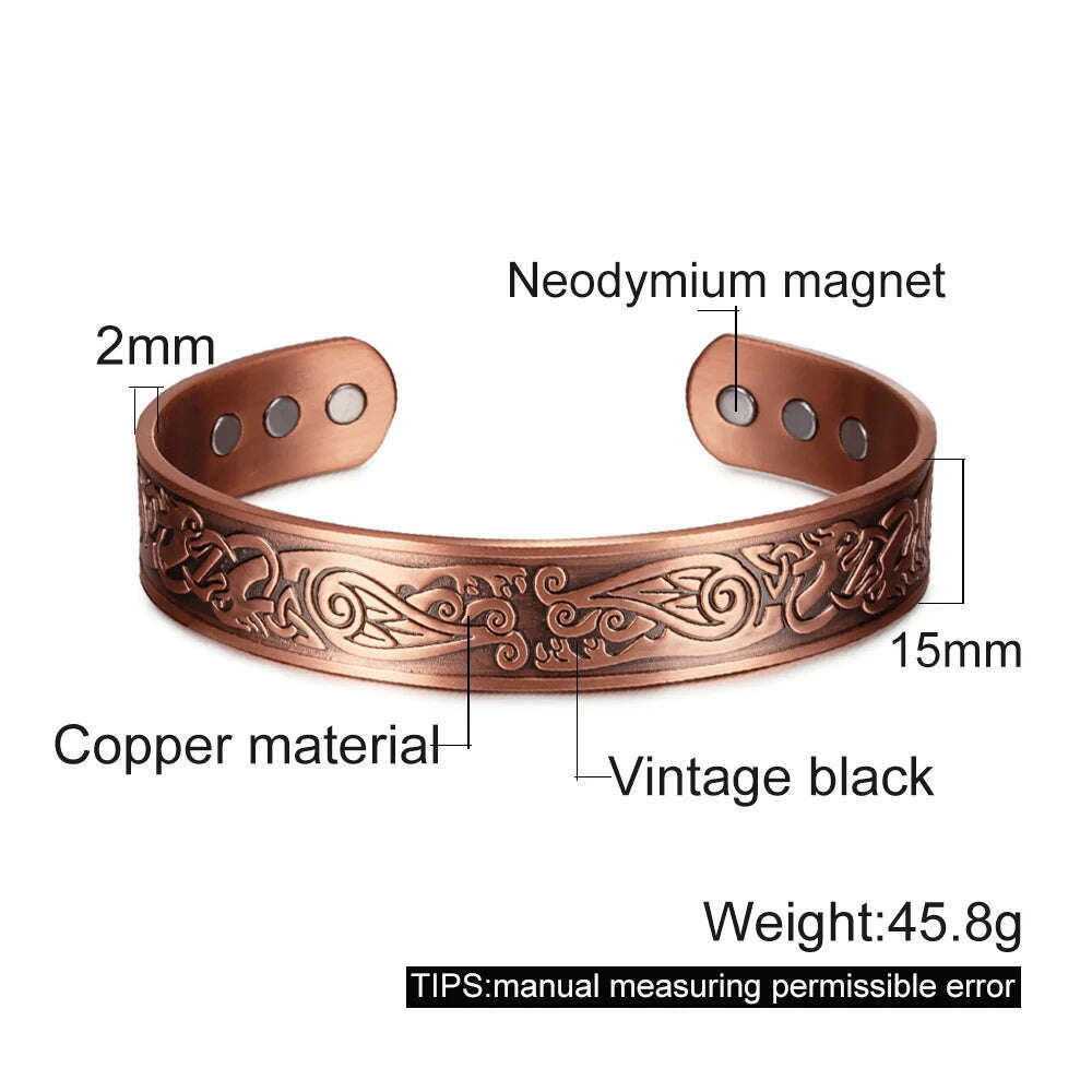Viking Pure Copper Bracelet Men Adjustable Cuff Energy Magnetic Bracelet Benefits Wristband Hard Health Man Bracelet Knot Metal