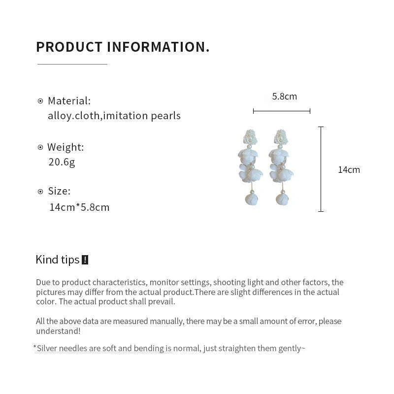 White Flower Long Fringe Earrings Imitation Pearl Crystal Dangle Earrings For Women Girls Fashion Delicate Party Wedding Jewelry