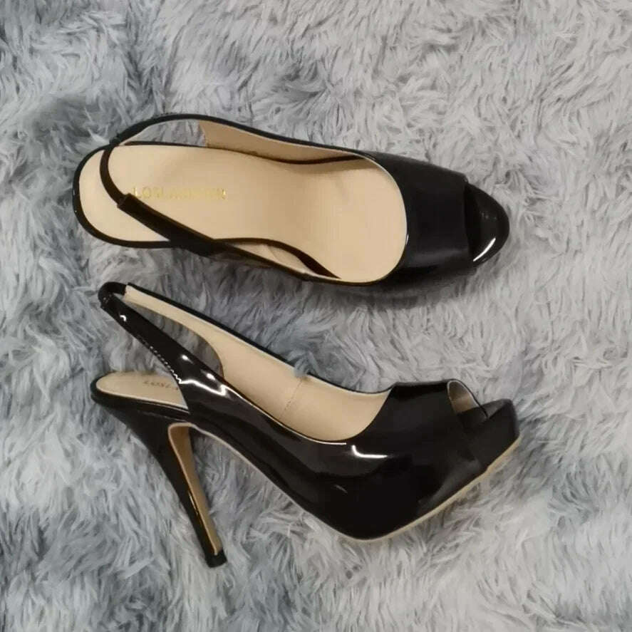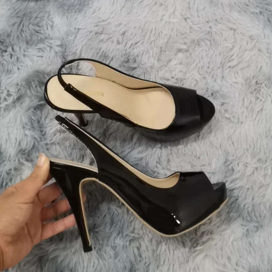 Women Sandals Sexy Pumps Summer Patent Leather Platform High Heels 12cm Open Toe Stilettos Gladiator Party Dress Wedding Shoes