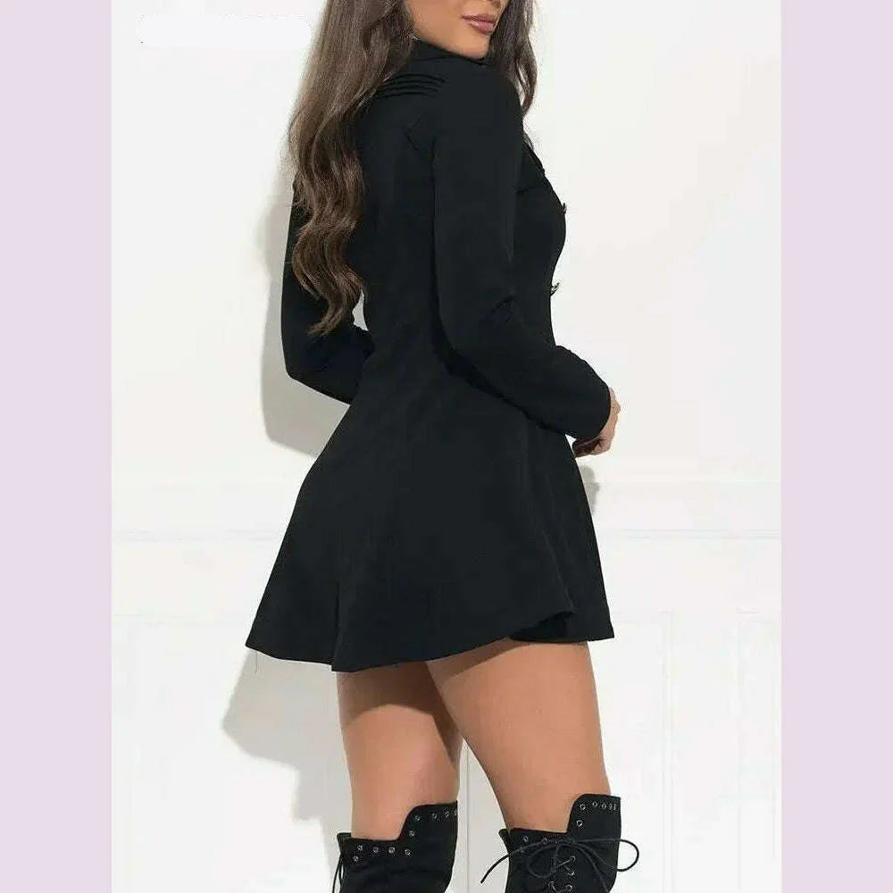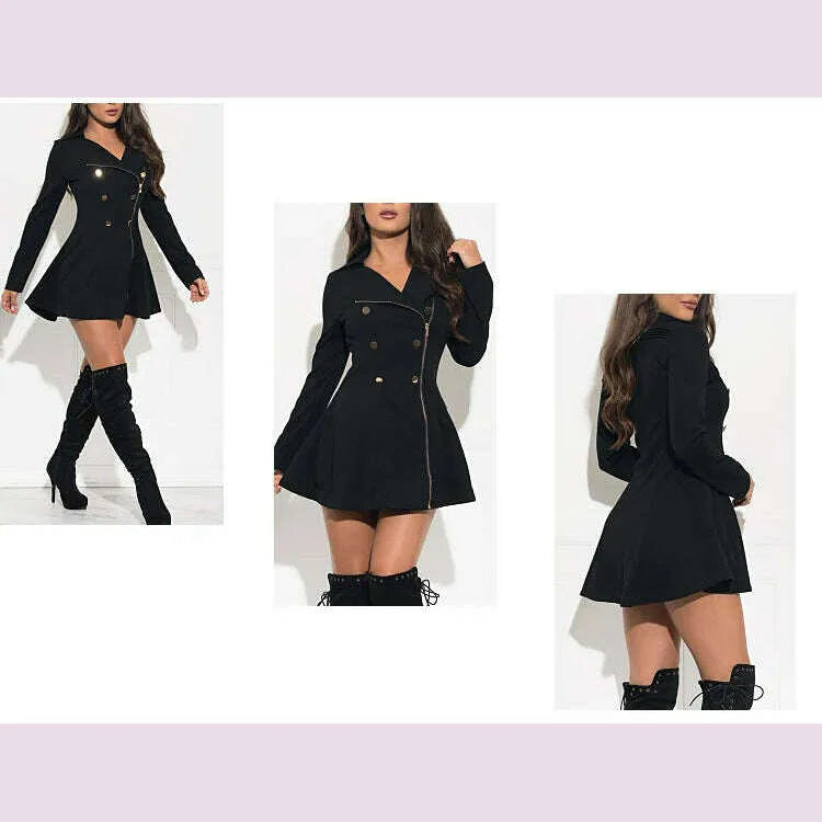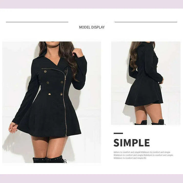 Women Short Trench Sexy Slim Zipper Double Breasted Spring Thin Jackets Black Solid Lapel Elegant Midi Dress