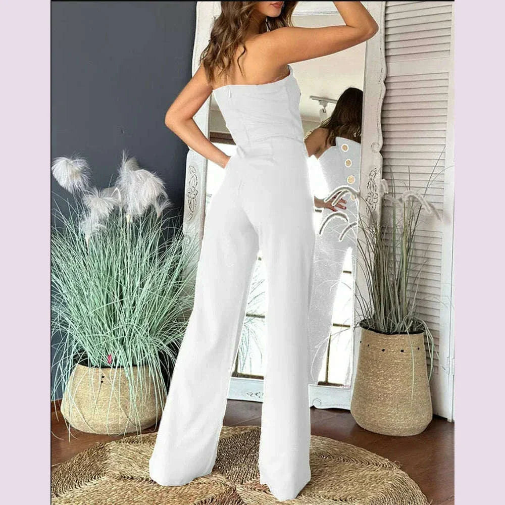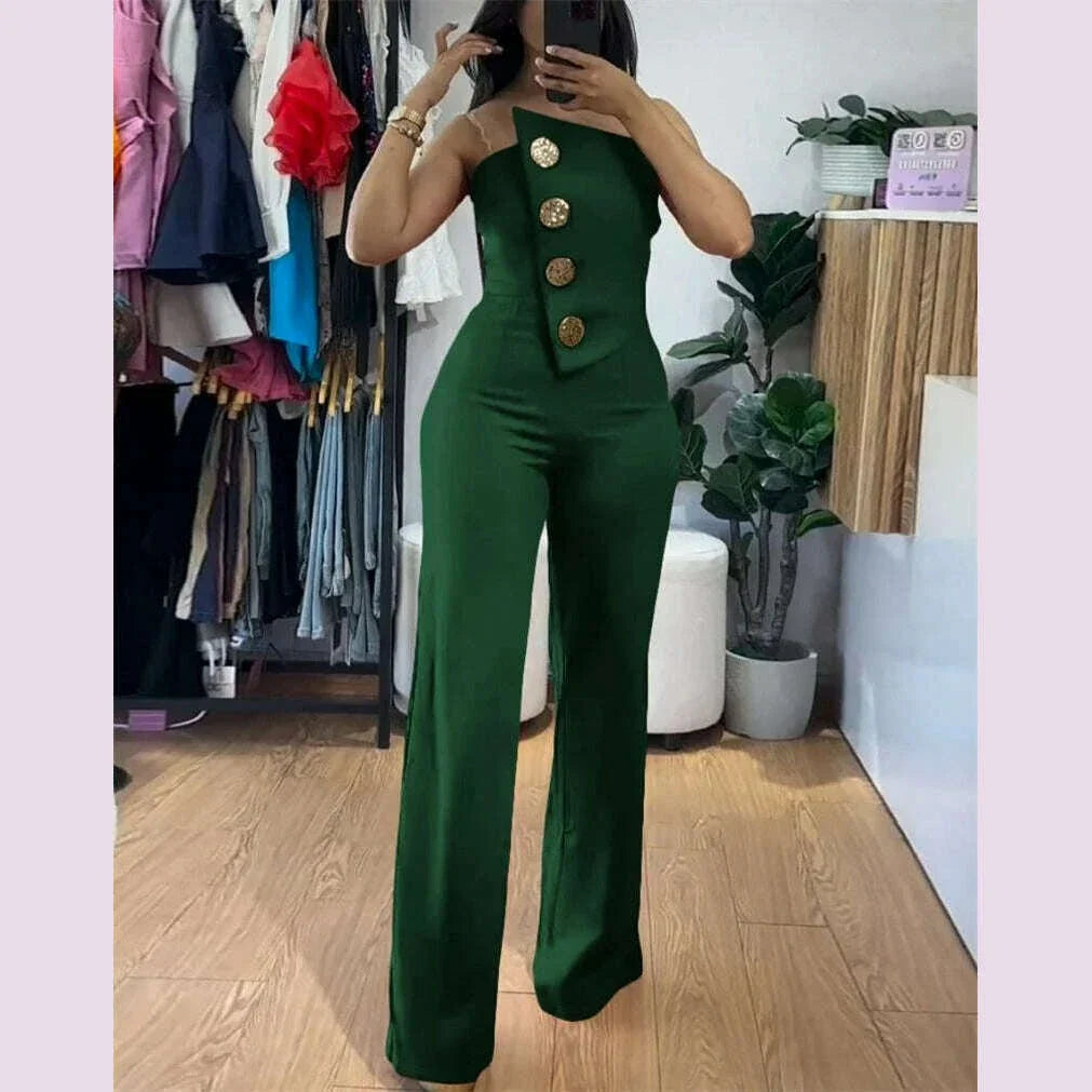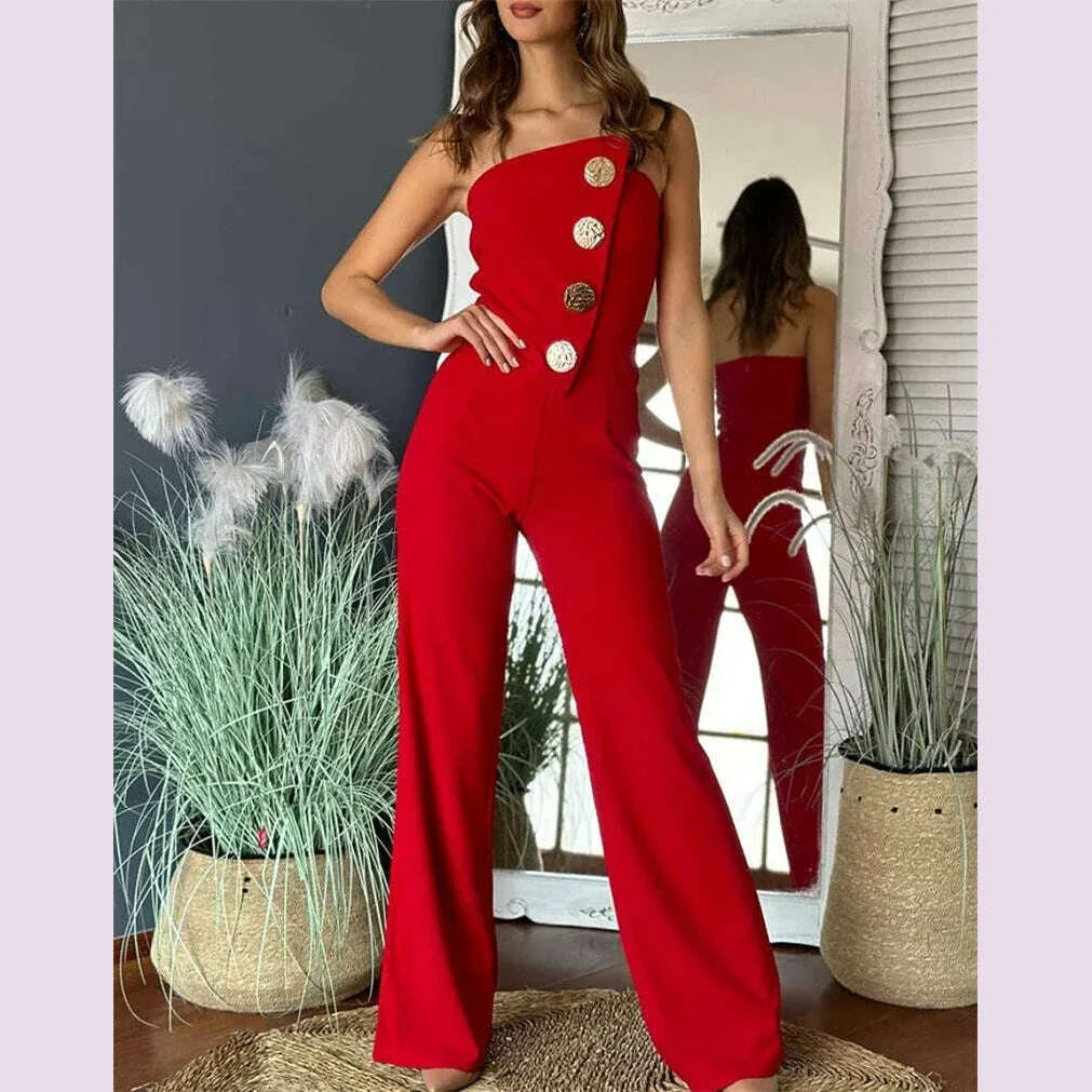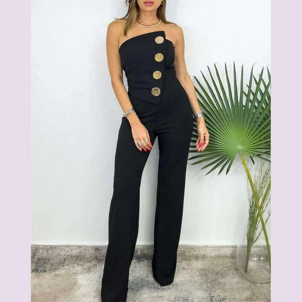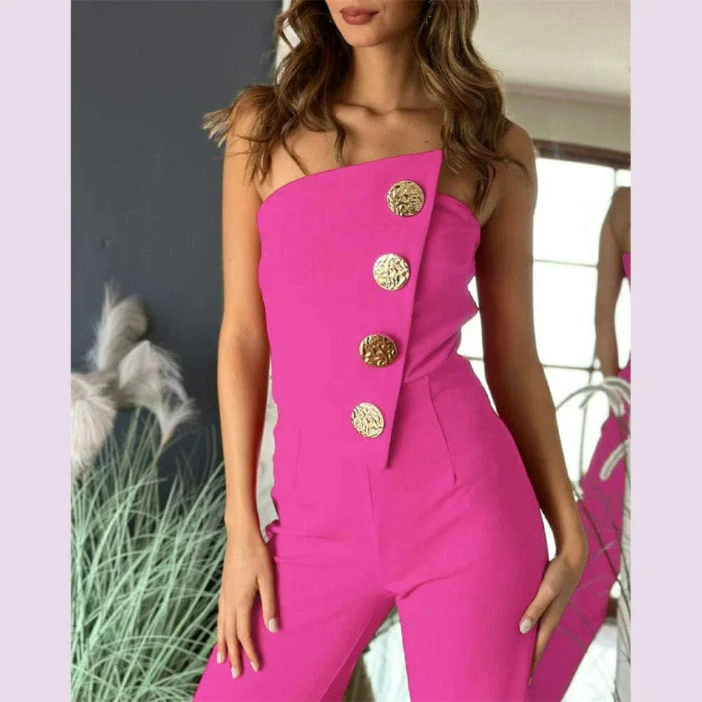 Women's Elegant Sexy Button Sleeveless Strapless Irregular Jumpsuits 2025 Wide Leg Outfits Night Club Streetwear One Piece